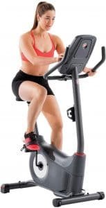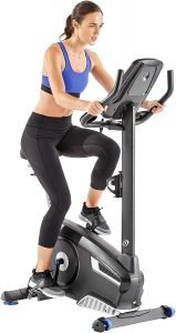 The caged foot pedals help you to have proper foot placement during biking workout by securing your feet correctly so that your feet don’t slip as you increase the intensity and speed. The pulse grips on the handlebars help to monitor and maintain your targeted heart rate to help you burn more fat. The seat has thick padding and is a bit wider than the normal bike seats which add to your comfort. This bike has transportation wheels at the front making it easier to effortlessly move it to from room to room by just tilting and rolling it. The wheels are tall and narrow and made with rubber which is easy to move on any floor surface and it won’t scratch your floor.